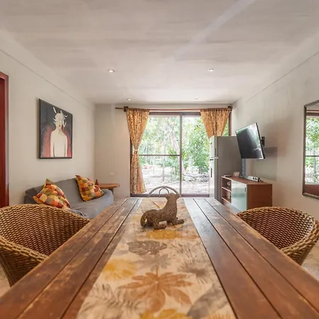 Apartamento Departamento Con Cenote En Tulum Solo Adultos Macario Gomez, que incluye una terraza, se encuentra a 300 metros del Parque Nacional Tulum. El apartamento está a una distancia de 3 km de la Aktun-Ha, mientras que el Cenote Isla Alamos está a aproximadamente 10 minutos en coche.